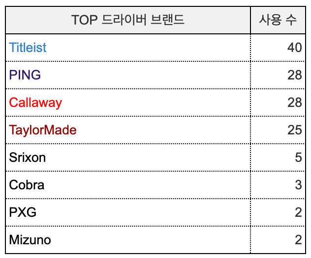 드라이버 브랜드 중에서는 타이틀리스트가 압도적입니다.